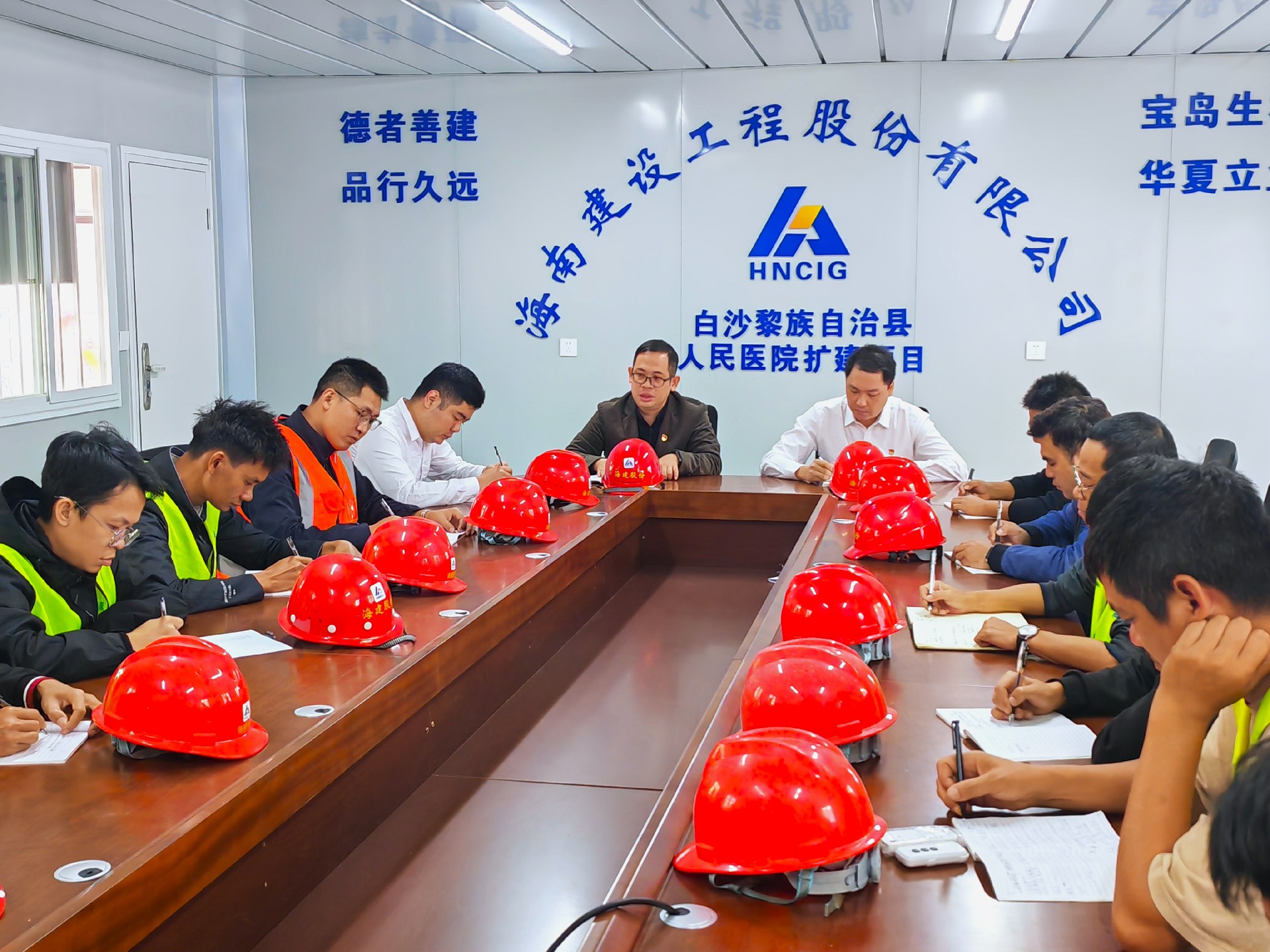 在白沙黎族自治縣牙叉鎮(zhèn)縣人民醫(yī)院擴(kuò)建項(xiàng)目,我司黨委領(lǐng)導(dǎo)班子還在慰問活動(dòng)后共同在項(xiàng)目臨時(shí)黨支部為全體黨員上黨課。