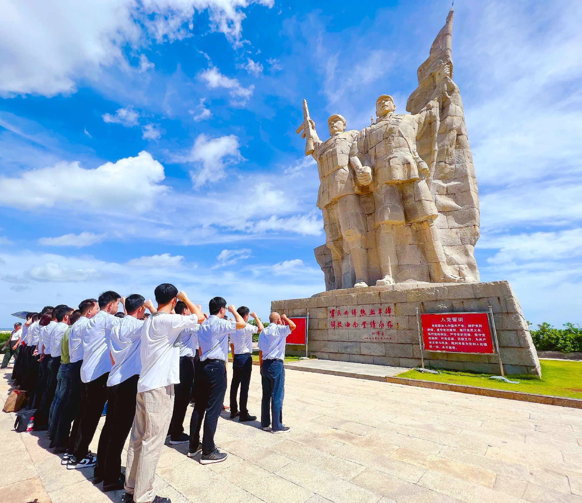 在臨高角解放海南紀(jì)念雕像前,全體人員面向豐碑雕像行三鞠躬禮并瞻仰,寄托對(duì)革命先烈的深切哀思,表達(dá)對(duì)革命先烈的無限崇敬之情。隨后,由公司黨委書記劉圳濱領(lǐng)誓,在場(chǎng)全體黨員、預(yù)備黨員高舉右拳,面對(duì)鮮紅黨旗,莊嚴(yán)宣誓,追憶入黨初心,一聲聲鏗鏘有力的誓言響徹現(xiàn)場(chǎng),展現(xiàn)了大家愛黨敬黨的激情。